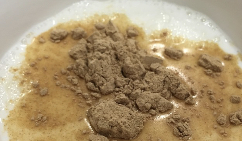 물에 마카분말 첨가한 후 녹여서 마시기.