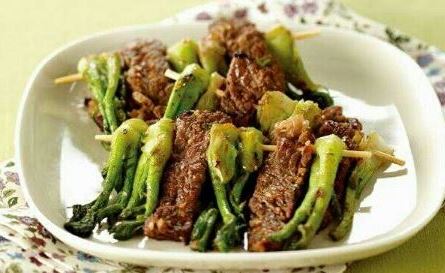 쇠고기, 돼지고기, 가래떡, 두릅은 꼬챙이에 꽂혀 산적처럼 만들어지고 달걀 옷을 입고 프라이팬에 살짝 빠진다. 이렇게 하면, 여러분은 두룸의 질감과 향기를 다르게 즐길 수 있습니다.