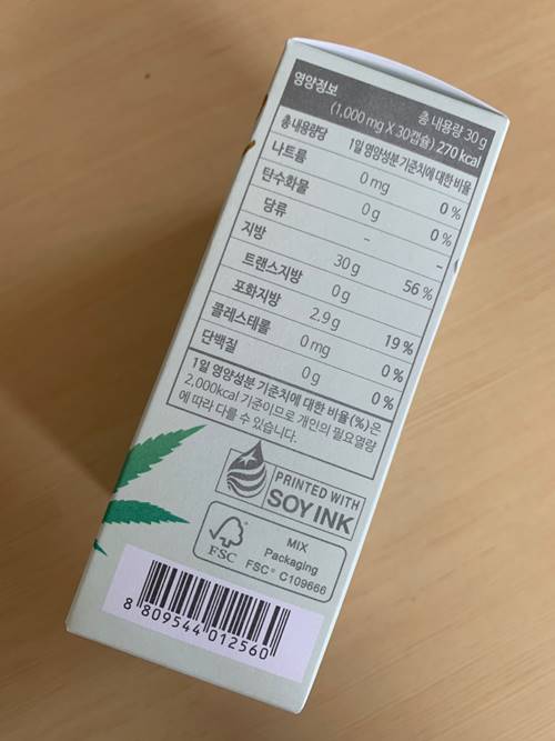 친절하게 적혀져 있습니다. 냉압착 대마종자유라는 것은 공정과정에서 냉압착 기술을 통해 만들어진 것을 말합니다.