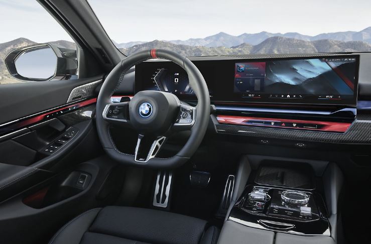 2024 BMW i5 M60은 12.3인치 디지털 계기판, 12.3인치 인포테인먼트 시스템, 10.25인치 헤드업 디스플레이, 14.9인치 컨트롤 디스플레이, 전자식 변속 다이얼, 스마트폰 무선 충전 시스템 등을 탑재합니다.